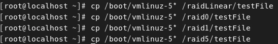 ls -l 명령으로 raid1 디렉토리와 raid5 디렉토리를 살펴보면 우리가 복사한 testFile이 살아있는 것을 확인할 수 있다.
