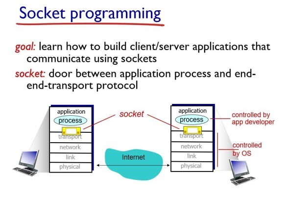 이 소켓을 통해서 정보가 들어오고 나간다. transport layer부터는 OS 가 전부 담당하기 때문에 어플리케이션 개발자는 application layer만 집중하면 된다.